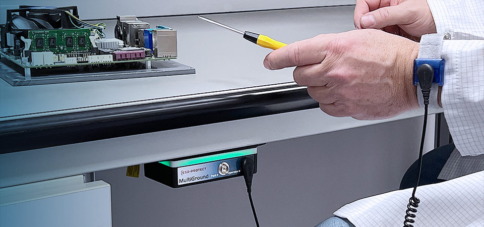 Sie prüfen permanent die Erdung des Menschen und der Arbeitsflächen, damit potenzielle Risiken frühzeitig erkannt werden.