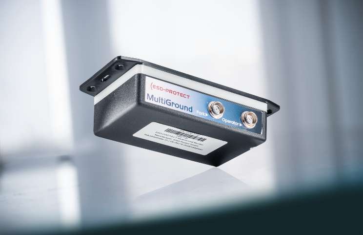The MultiGround ESD monitor ensures reliable and permanent earthing of the work surface and wrist strap. With integrated all-in-one technology, LED status display and audible alarm, MultiGround offers an intelligent solution for continuous ESD monitoring – for stable processes and optimum protection of sensitive electronics.